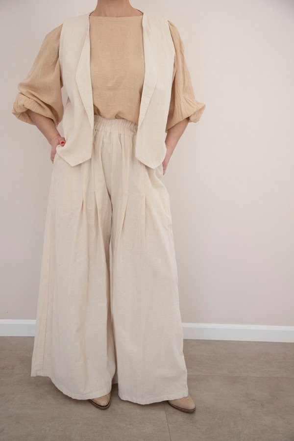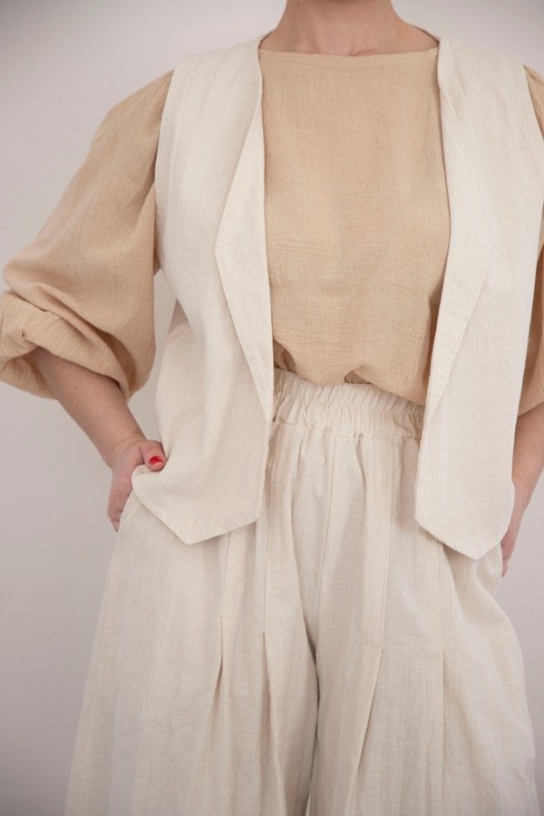 Conjunto de dos (2) piezas. Pant + Chaleco realizado en tusor liviano puro algodón.