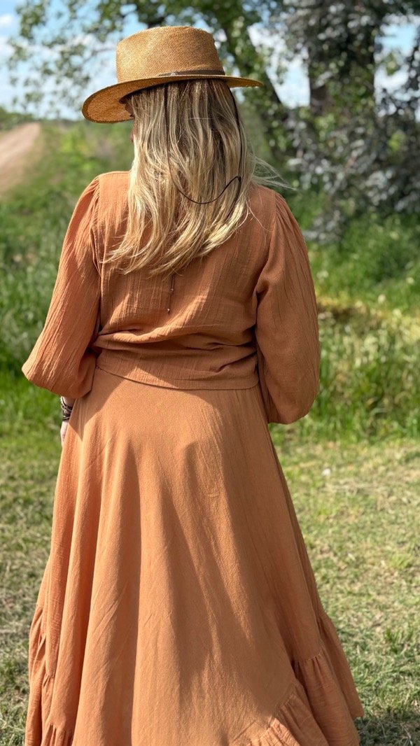 Cada prenda es de diseño de autora y confeccionada a mano, por lo que las medidas son aproximadas y pueden presentar pequeñas variaciones propias del proceso artesanal.